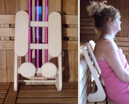 Saunové doplnky do fínskej sauny a infrasauny – patentované saunové opierky chrbta a hlavy pre vaše maximálne pohodlie pri domácom saunovaní vo vlastnej saune, ale aj pri saunovaní vo verejných saunách. Sedenie v saune býva tiež nepohodlné. Preto boli vyvinuté tieto saunové doplnky, tieto dva typy saunových opierok chrbta a hlavy pre použitie vo fínskej saune a infrasaune. Základom týchto saunových doplnkov, patentovaných saunových opierok chrbta je poskytnúť trvalú oporu chrbtu a hlave bez pocitu tlaku. Saunové doplnky – saunové opierky chrbta a hlavy sú ergonomicky navrhnuté tak, aby boli vhodné pre každý chrbát. Len tak môžu tieto saunové opierky poskytnúť vášmu telu neprekonateľnú relaxačnú pozíciu vo fínskej saune či infrasaune.