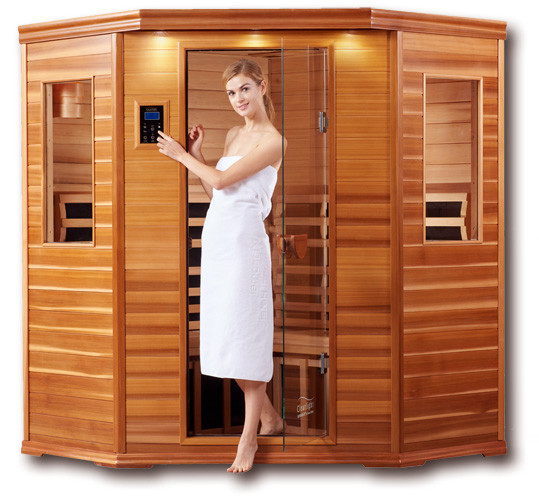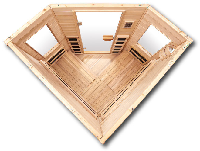 Skvele presvetlená infrasauna , priestorom nešetriaca krásna rohová infrasauna Premier 4 C uspokojí aj tých najnáročnejších milovníkov saunovania. Má dostatok miesta pre troch ľudí na terapiu či relax.